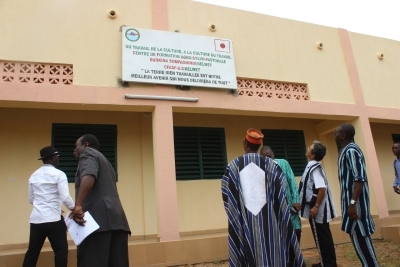 7月20日、ダペロゴ市において引渡式が行われました。式典には政府関係者の他、世界食糧計画(WFP)代表、伝統的首長、学校長、生徒等、約300人以上が集まりました。被供与団体のラルレ・ナーバ・ティグレ代表は、スローガンである「手間をかけて耕した土地はあらゆる困難を取り除く最良の未来」と謳い、ブルキナファソにおける知識の習得と勤労の重要性を強調しました。今後は全国から農業を志す若者が集められ、有機農業や加工など新しい農業技術の普及・促進が行われる予定です。
